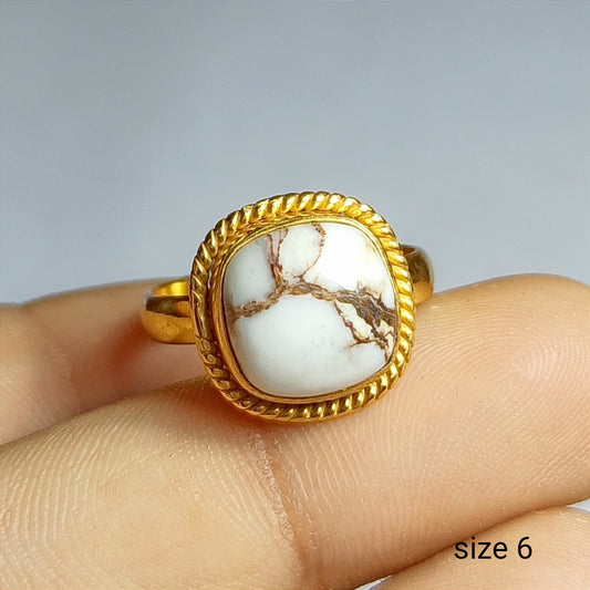 Wild Horse Gemstone Silver Ring, 92.5 Gold Plated Silver Ring, Gemstone Ring Size - 7.5