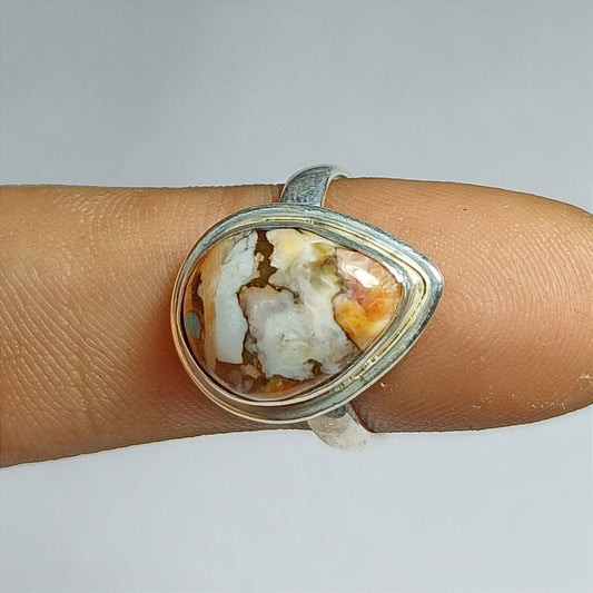 Spiny Oyster Turquoise Ring, 92.5 Solid Sterling Silver Ring, Pear Stone, Ring Size - 6