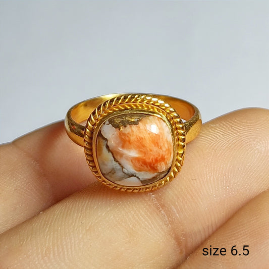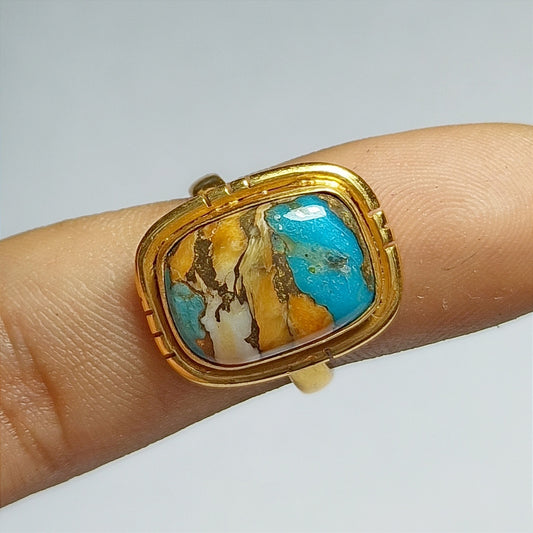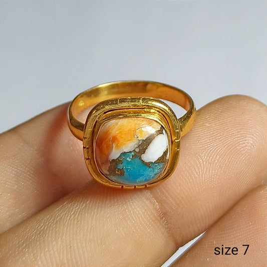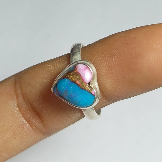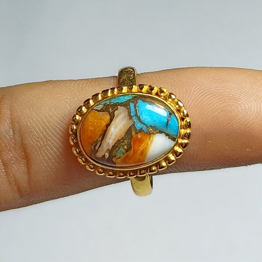 Spiny Oyster Turquoise Gemstone Silver Ring, 92.5 Solid Sterling Silver Ring, Ring Size - 6.5