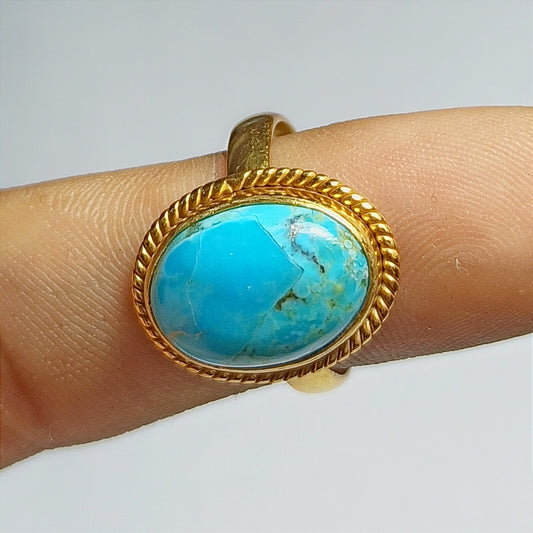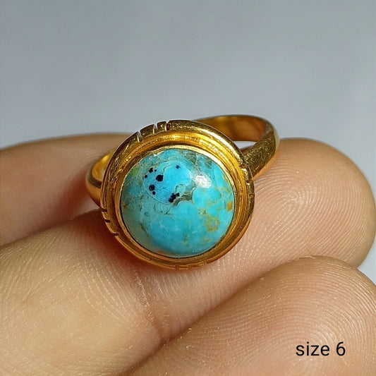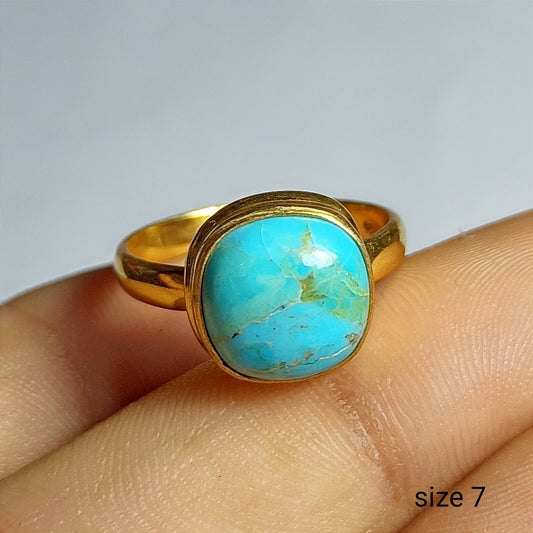 Turquoise Gemstone Silver Ring, 92.5 Gold Plated Silver Ring, Ring Size - 6
