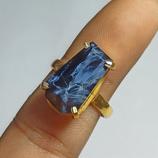 Unique Pietersite Ring Gold Plated Silver Ring Gemstone