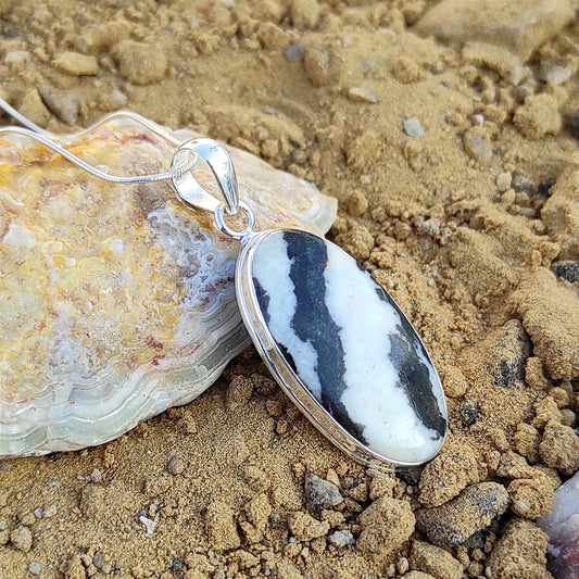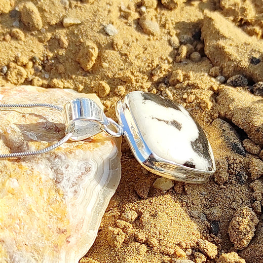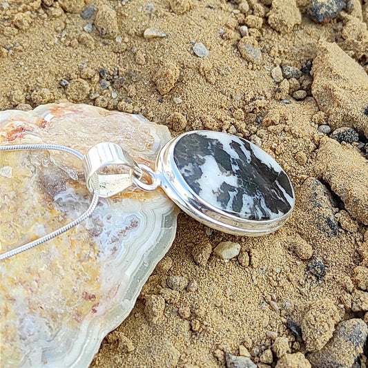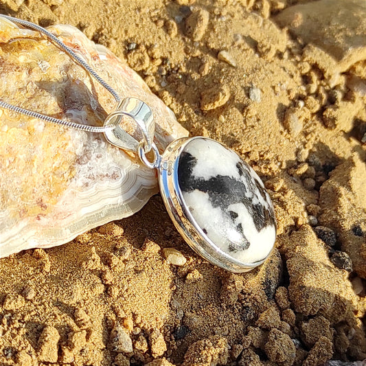 Zebra Jasper Gemstone Silver Pendant Solid 925 Sterling Silver Oval Shape Gemstone Charm Pendant Necklace,