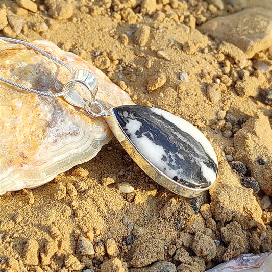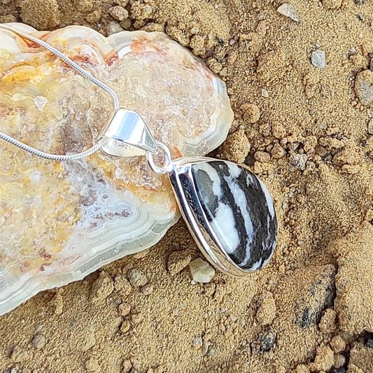 Zebra Jasper Gemstone Silver Pendant, Solid 925 Sterling Silver Pear Shape Gemstone Charm Pendant Necklace, 31x17x6mm