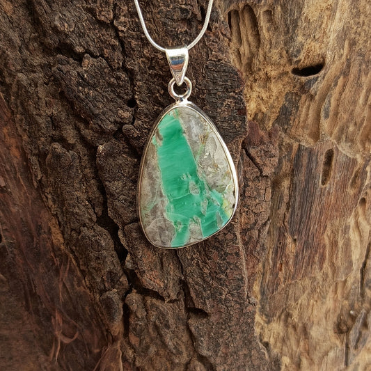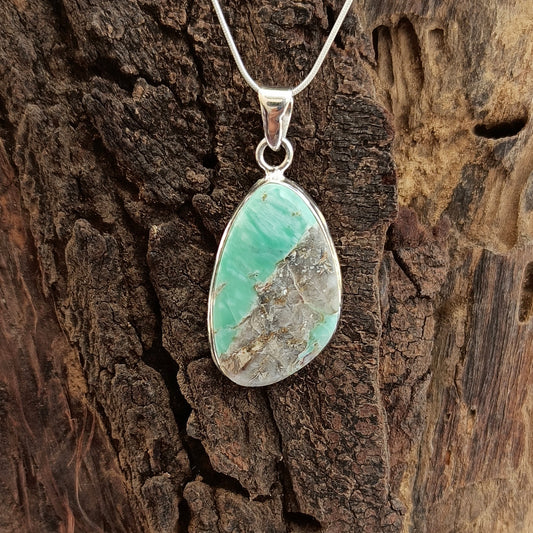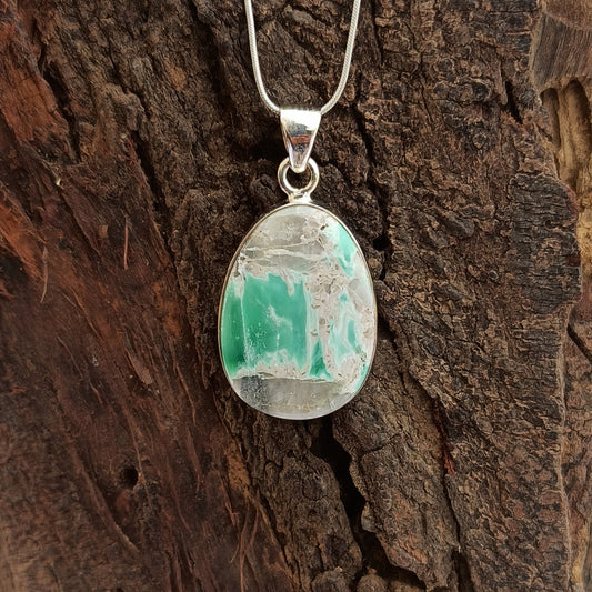 Utah Variscite Gemstone Pendant, 92.5 Sterling Silver Pendant, Tumbled Pendant, 39x22x6mm