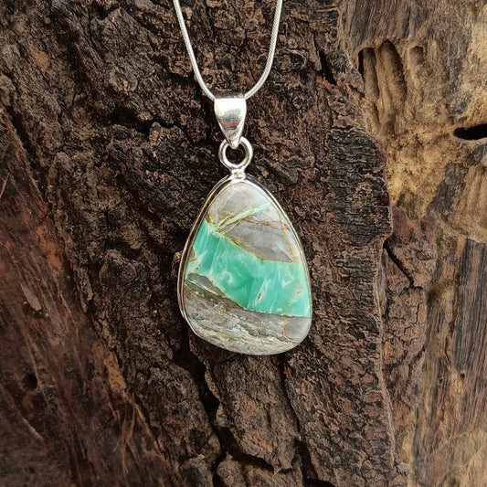 Utah Variscite Gemstone Pendant, 92.5 Sterling Silver Pendant, Tumbled Pendant, 33x19x6mm