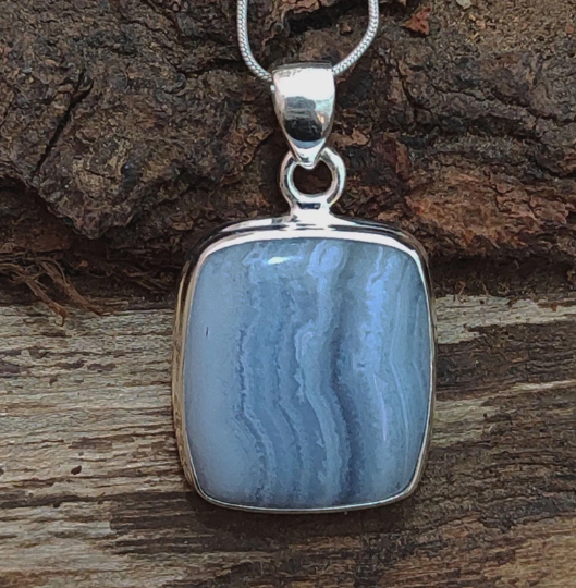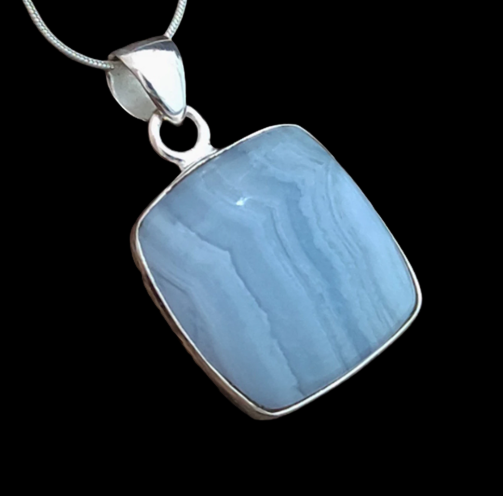 Blue Lace Agate Sterling Silver Pendant