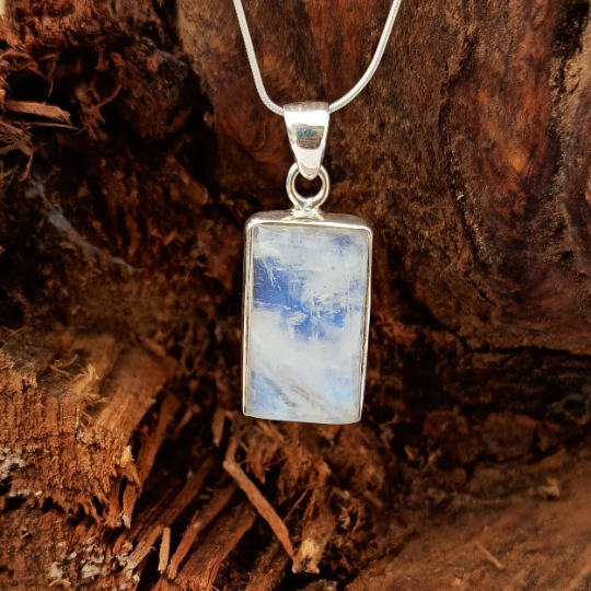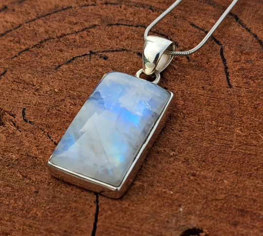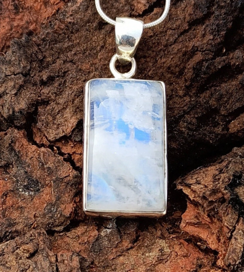 Natural Rainbow Moonstone Gemstone Silver Pendant, 925 Sterling Silver Gemstone Pendant, Baguette Shape Silver Pendant, 29x14x7mm