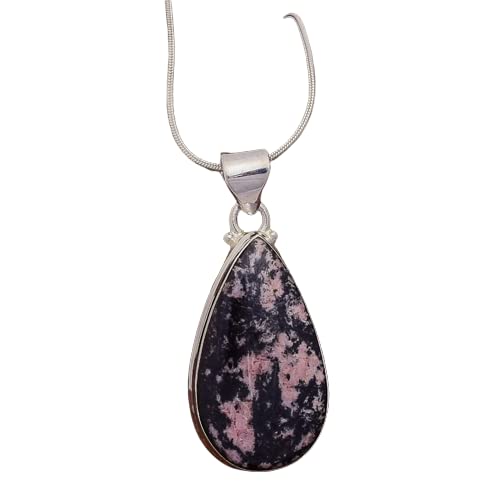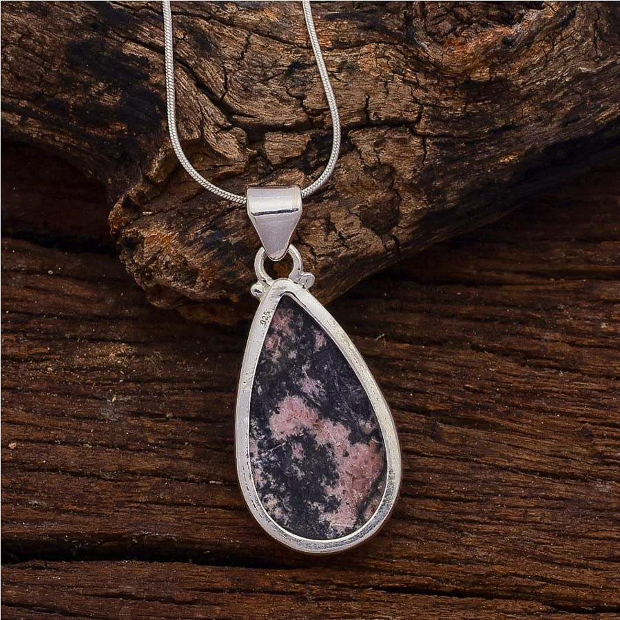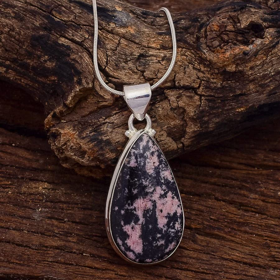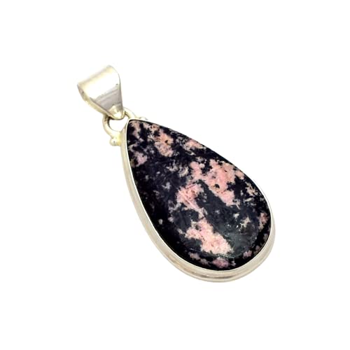 Rhodonite Gemstone Silver Fashion Jewelry Pendant, 925 Sterling Silver Gemstone Necklace For Party Wear - 39x19x6mm