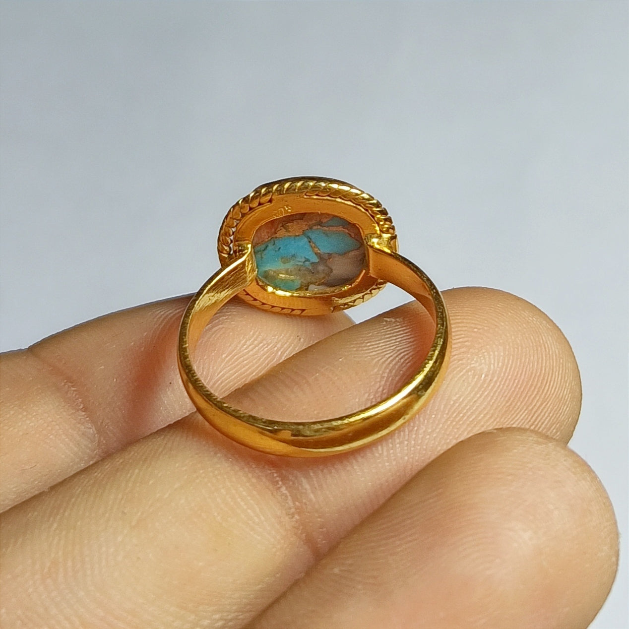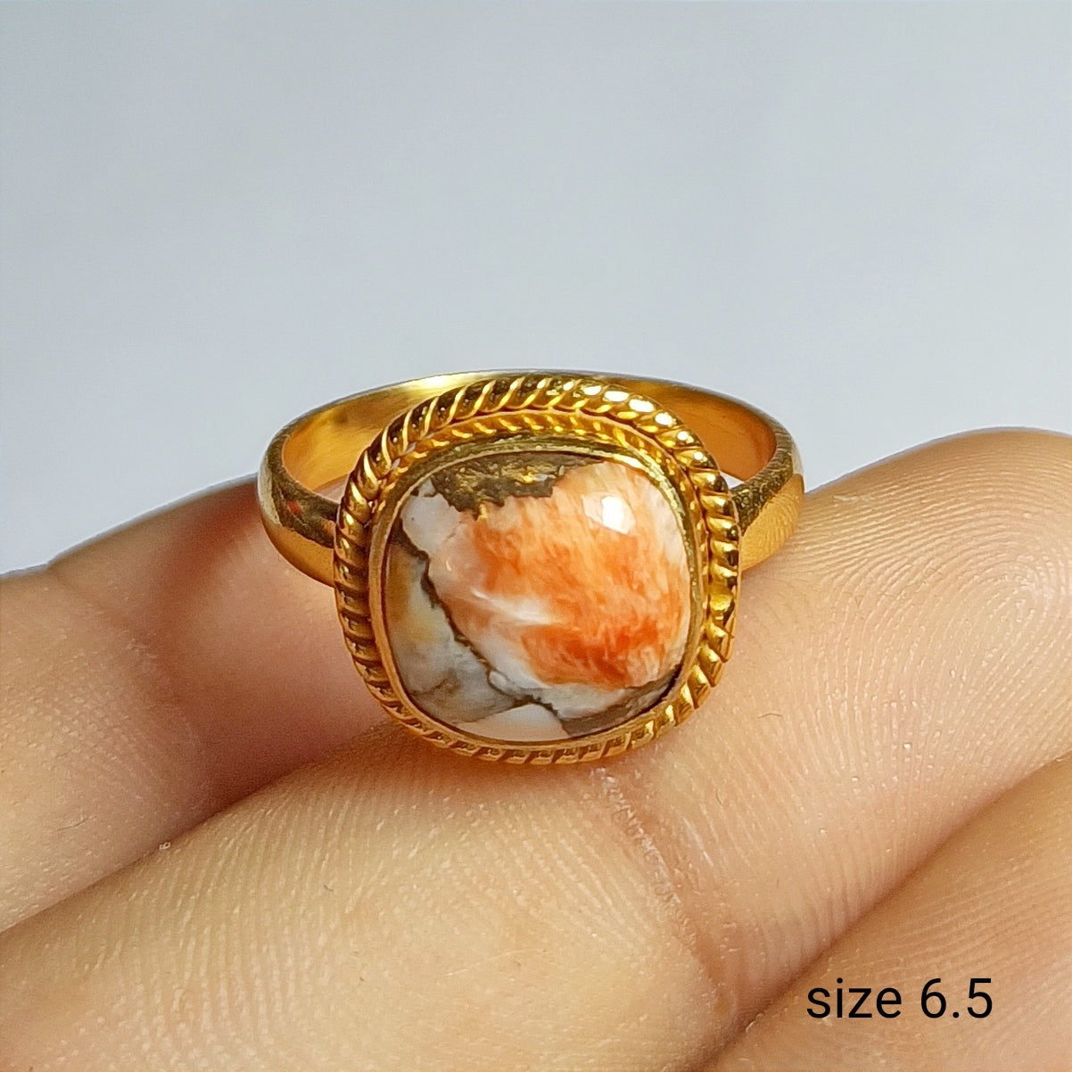 Spiny Oyster Turquoise Gemstone Silver Ring, 92.5 Solid Sterling Silver Ring, Ring Size - 6.5