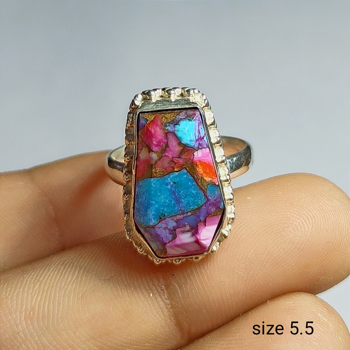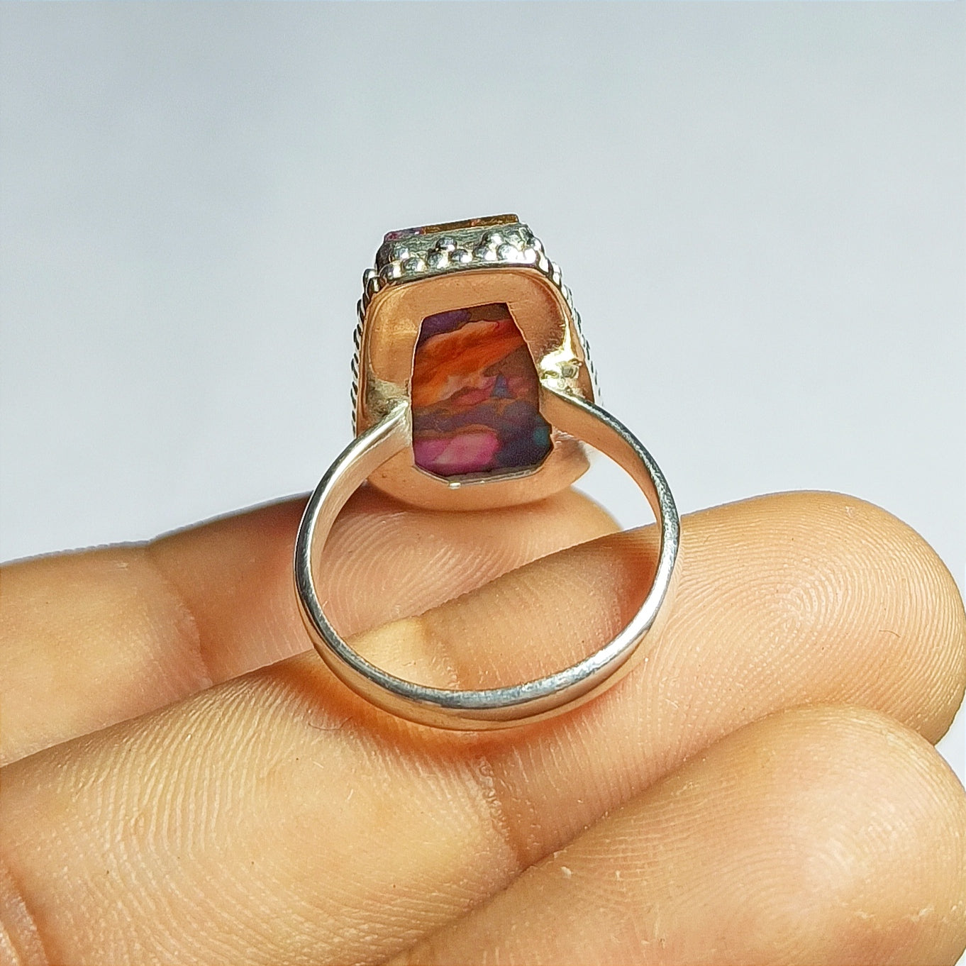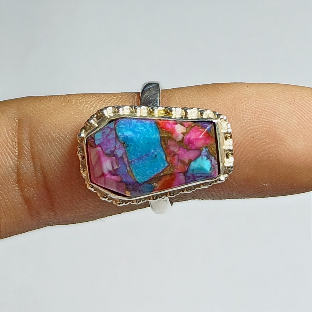 Pink Oyster Turquoise Ring, 92.5 Solid Sterling Silver Ring, Ring Size - 5.5
