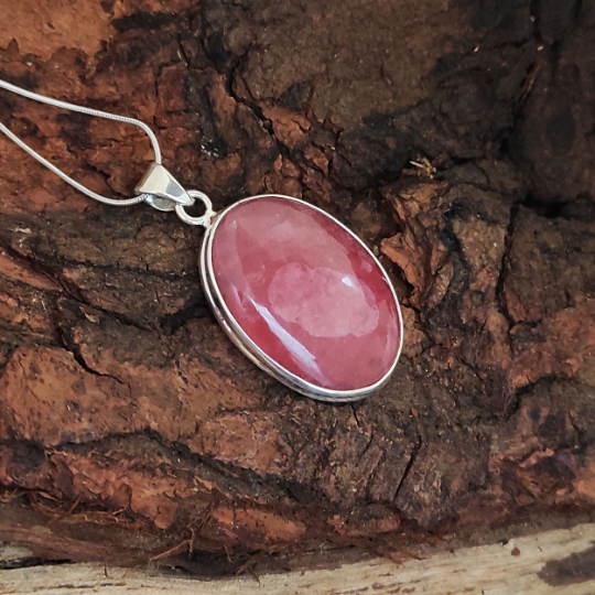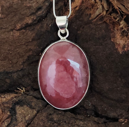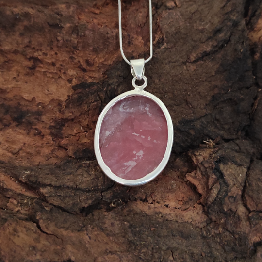 Rhodochrosite Gemstone Sterling Silver Charm Pendant, 92.5 Silver Jewelry Pendant, Rhodochrosite Statement Pendant, 36x23x6mm