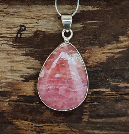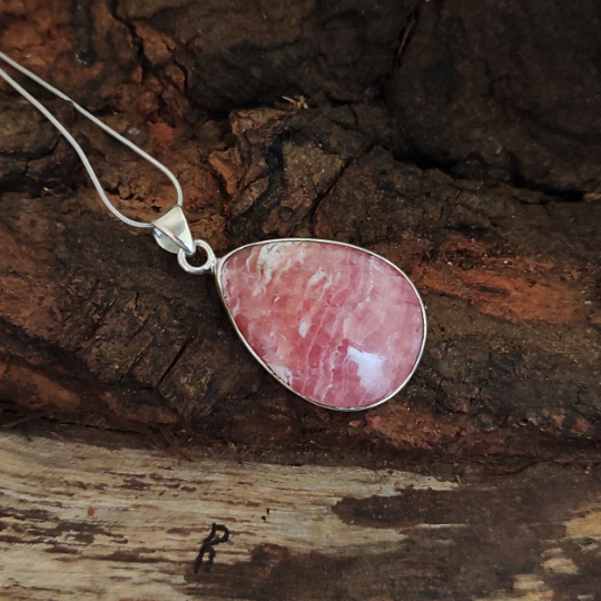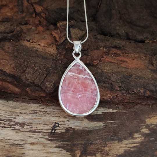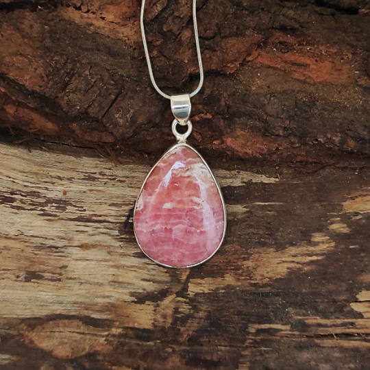 Rhodochrosite Solid 925 Sterling Silver Charm Pendant, Rhodochrosite Statement Pendant, Pear Shape Silver Pendant, 36x22x6mm By PEDRAJEWELS