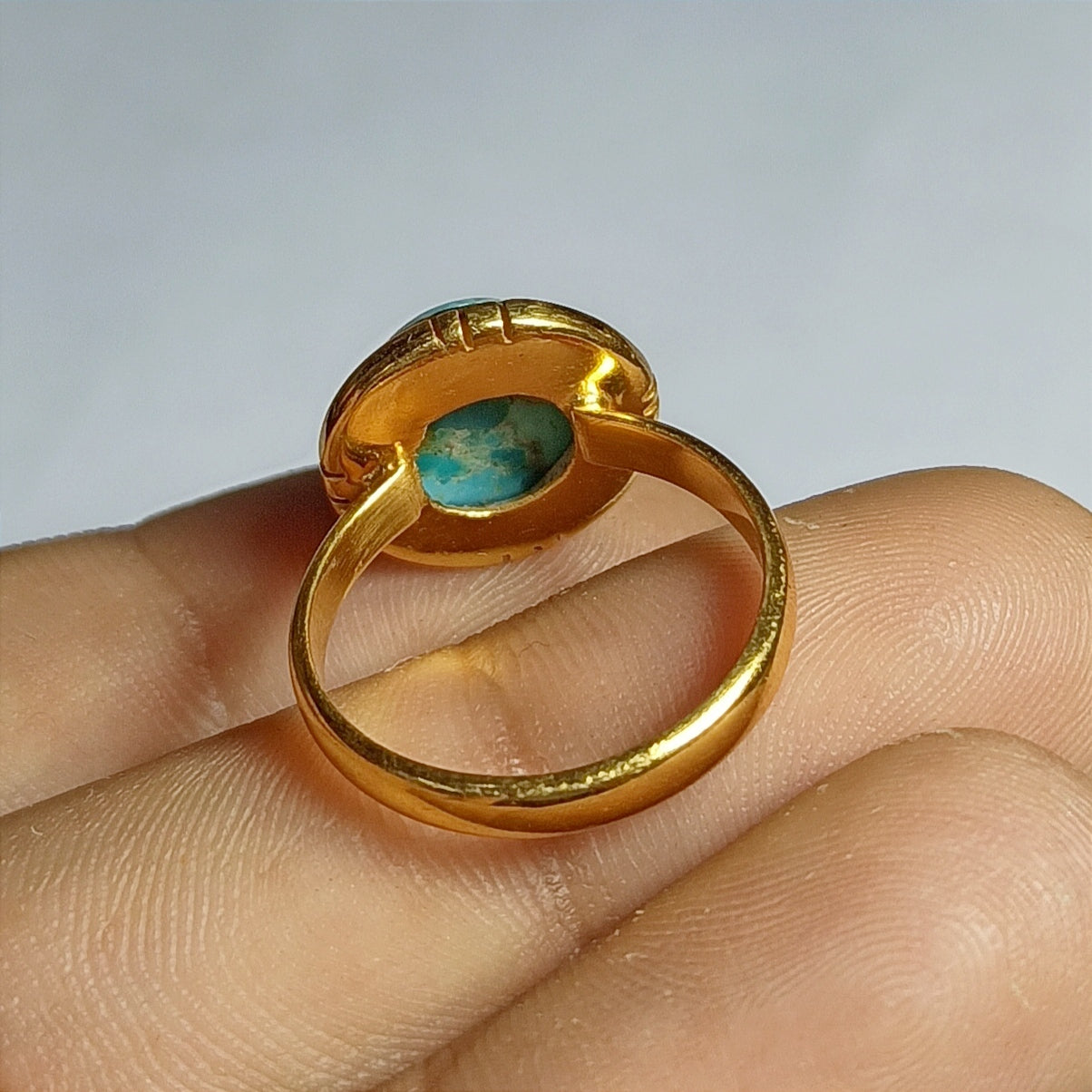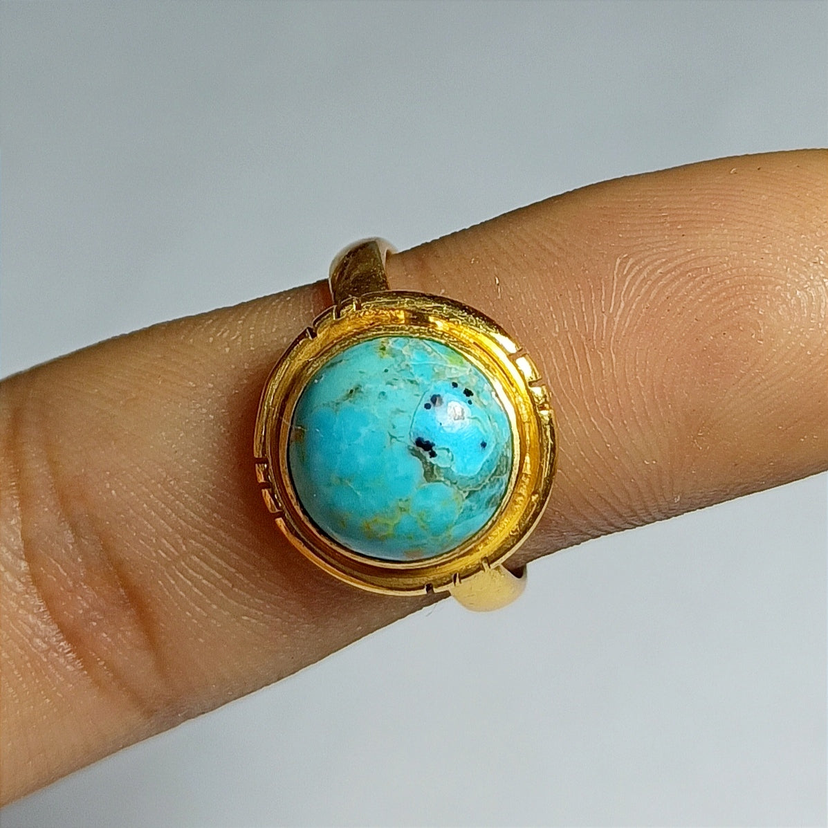 Turquoise Gemstone Silver Ring, 92.5 Gold Plated Silver Ring, Ring Size - 6