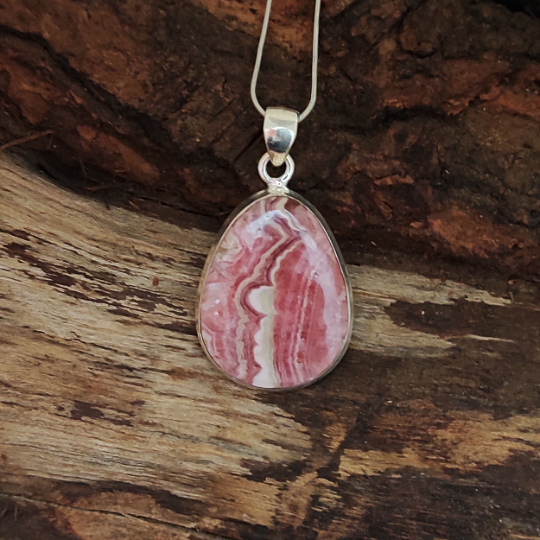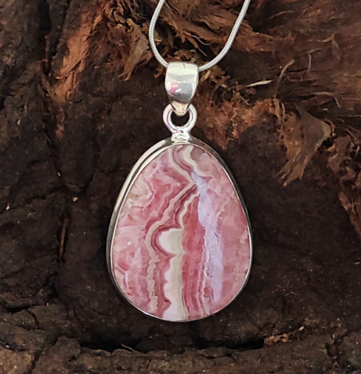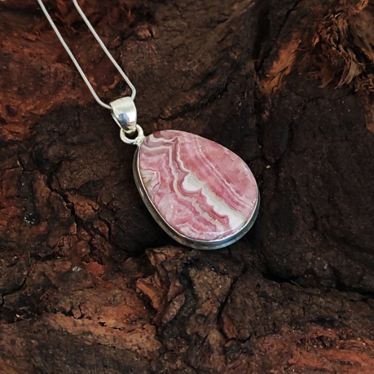 Rhodochrosite Solid 925 Sterling Silver Charm Pendant Rhodochrosite Statement Pendant, Egg Shape Silver Pendant, 35x22x6mm