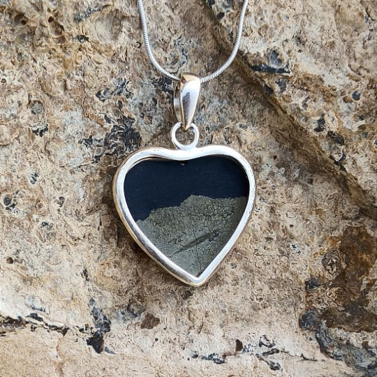 Pyrite Gemstone Silver Fashion Jewelry Pendant, Solid 925 Sterling Silver Pyrite Charm Pendant, Heart Shape Gemstone Pendant, 28x25x6mm