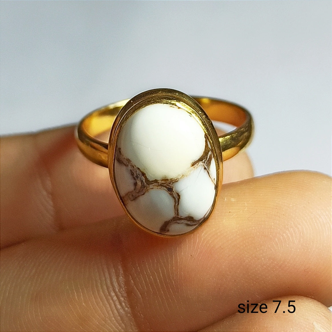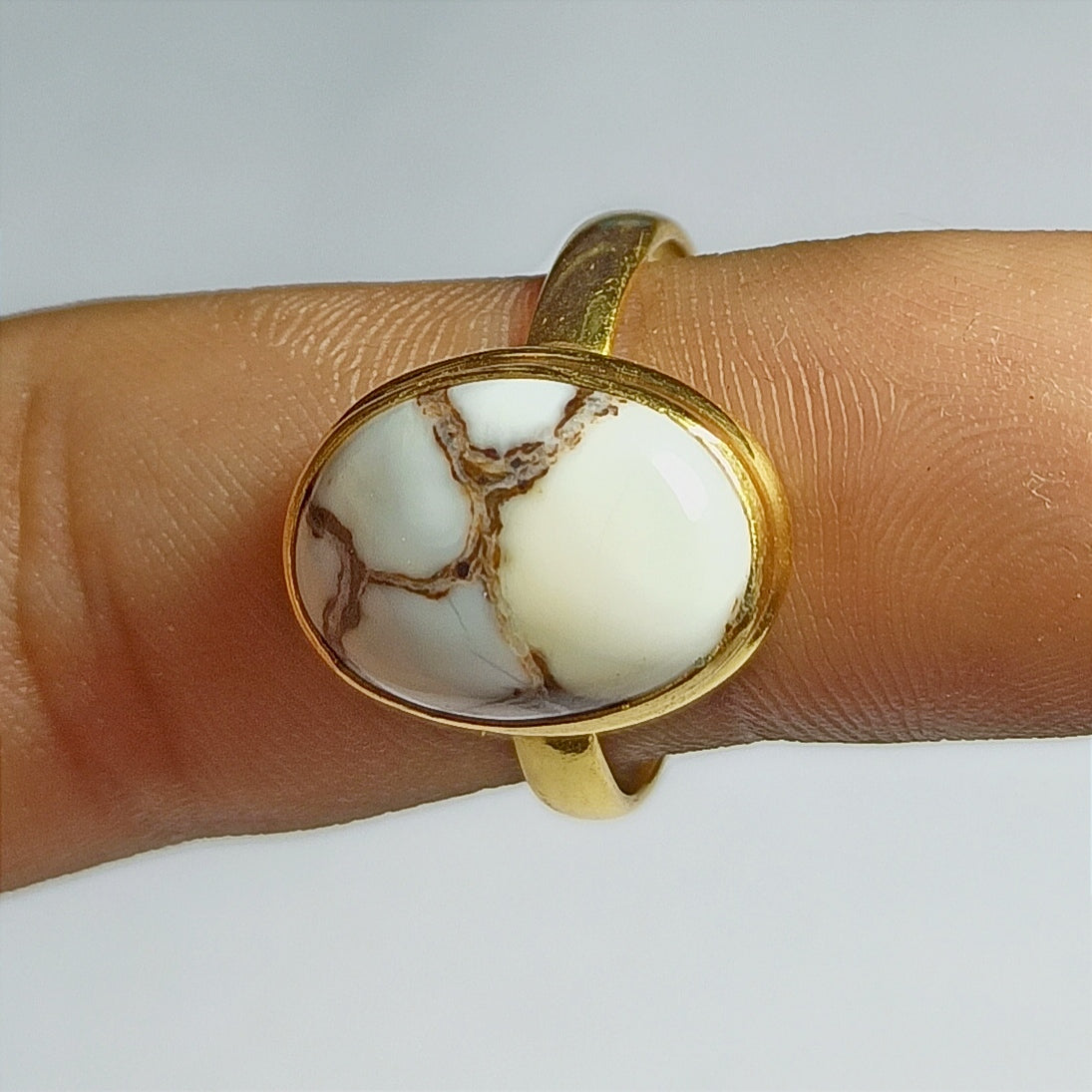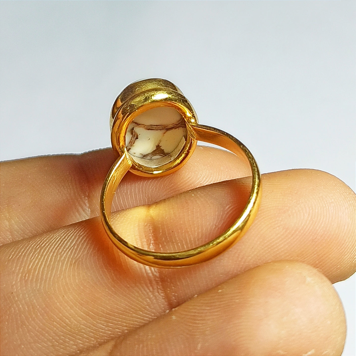 Wild Horse Gemstone Silver Ring, 92.5 Gold Plated Silver Ring, Gemstone Ring Size - 7.5